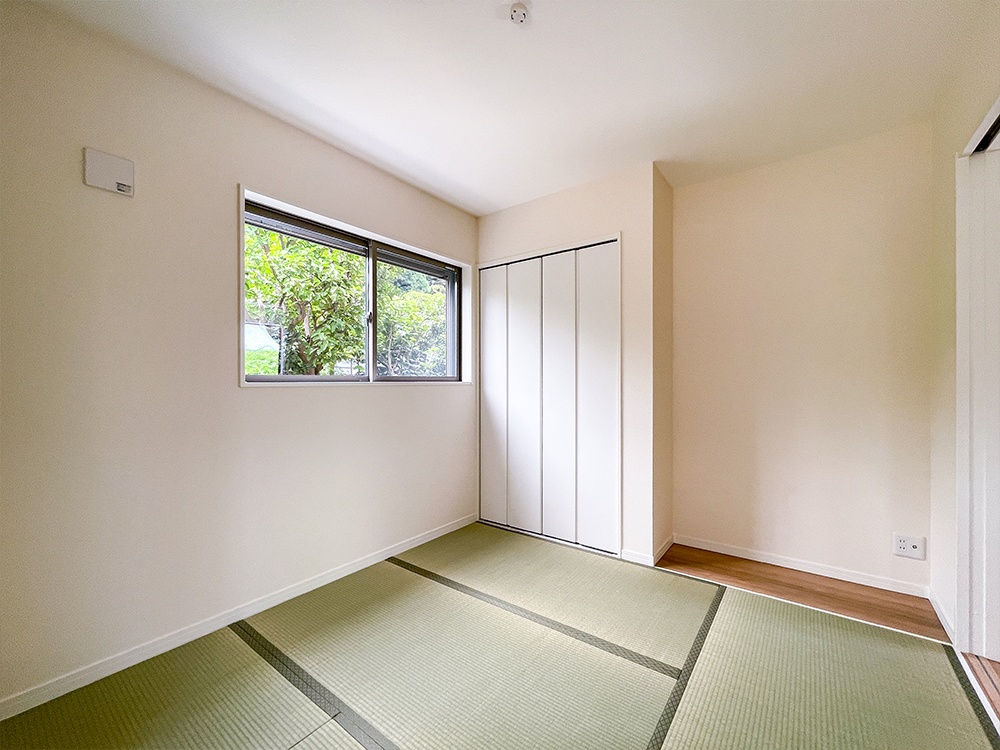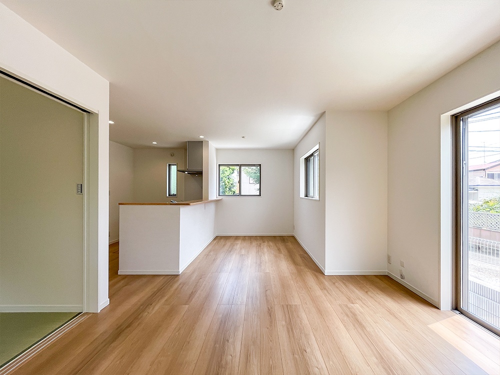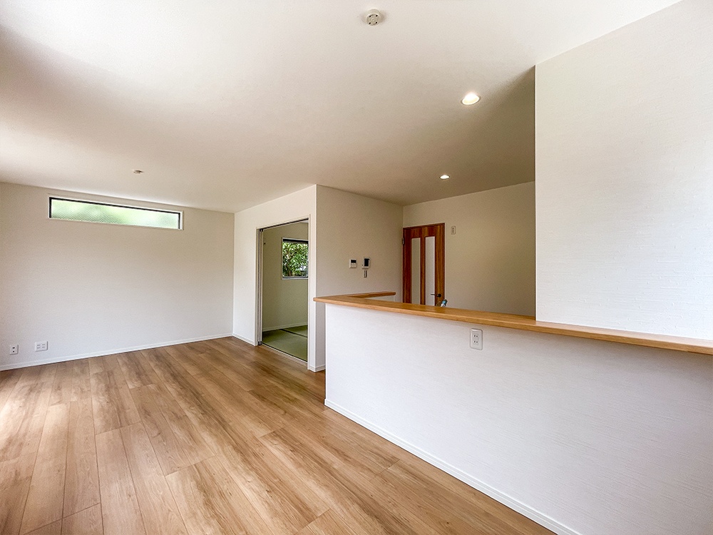 リビング横の和室には、あると便利な板畳を設けた和みの住空間。