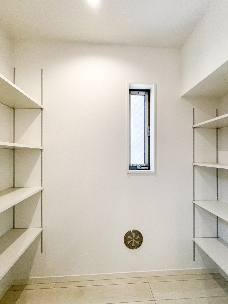収納力のあるシューズクロークやパントリーが便利で、家族の動線をすっきり整理可能。